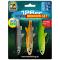 Ce pack de 3 leurres shad de **12 centimètres** constitue l'arsenal parfait pour la pêche aux carnassiers. Avec un poids optimisé de **28 grammes** par leurre, ces shads offrent une action de nage réaliste qui déclenche l'instinct de prédation des brochets, sandres, perches et black-bass. Les leurres shad sont des imitations de poissons fourrage particulièrement efficaces grâce à leur forme hydrodynamique et leur queue vibrante qui produit des ondulations irrésistibles sous l'eau. Cette taille de **12cm** représente le compromis idéal entre attractivité pour les gros carnassiers et polyvalence d'utilisation dans différents postes de pêche. Le poids de **28g** permet des lancers précis à bonne distance, même par vent modéré, tout en maintenant un contrôle optimal de la présentation. Cette caractéristique technique facilite la prospection des zones profondes et des courants, zones de prédilection des carnassiers. Ce kit complet de **3 pièces** vous assure une session de pêche productive en vous offrant des leurres de rechange en cas de casse sur obstacle ou de poisson particulièrement combatif. La configuration en pack permet également de varier les animations et les couleurs selon les conditions de pêche rencontrées. Que vous soyez pêcheur confirmé ou amateur de loisirs aquatiques, ces leurres shad s'adaptent parfaitement à vos sorties en rivière, lac ou plan d'eau. Leur efficacité reconnue en fait un incontournable de la boîte à leurres de tout pêcheur de carnassiers sérieux.