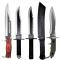 Dans ce pack complet, vous retrouverez le couteau de Rambo 1, le couteau de Rambo 2, le couteau de Rambo 3, la machette de Rambo 4 et le couteau de Rambo 5.