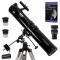Le Pack Complet Omegon 114/900 EQ1 est un kit incluant un Télescope débutant, une monture équatoriale, un zoom optique, un guide débutant, deux oculaires et une lentille de Barlow.