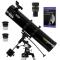 En effet, ce kit se compose d'un Télescope Omegon 130/920, d'une monture équatoriale EQ2, d'un zoom, d'un guide débutant et d'oculaires.