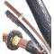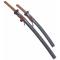 Superbe reproduction d'un katana et Wakizashi japonais en bois. Lame en bois wenge. Les fourreaux sont en bois laque noir avec gravure de dragon. Tsuba est en acier. Katana : Longueur avec fourreau : 103cm Longueur katana : 99cm Longueur lame : 71cm Poids katana et fourreau : 690grs Poids katana seul : 410grs Wakizashi : Longueur avec fourreau : 78cm Longueur Wakizashi : 74cm Longueur lame : 51cm Poids Wakizashi et fourreau : 520grs Poids Wakizashi seul : 330grs Accessoire inclus : -Housse de protection -Support bois Concus pour les entrainements au maniement du katana et Wakizashi.