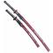 Superbe reproduction d'un katana et Wakizashi japonais en bois. Lame en bois wenge. Les fourreaux sont en bois noir avec dragon. Tsuba est en acier. Dimension Katana : Longueur avec fourreau : 103cm Longueur katana : 99cm Longueur lame : 71cm Poids katana et fourreau : 620grs Poids katana seul : 390grs Dimension Wakizashi : Longueur avec fourreau : 77cm Longueur Wakizashi : 72cm Longueur lame : 51cm Poids Wakizashi et fourreau : 550grs Poids Wakizashi seul : 320grs Accessoire inclus : -Housse de protection -Support bois Concus pour les entrainements au maniement du katana et Wakizashi.
