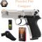 Pistolet à blanc ou à gaz Cal. 9 mm PA, métal, plaquettes plastique noir, chargeur 10 coups, simple et double action. Dimensions : 182 mm. Poids 965 g.