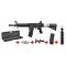 Inclus : canon type M-16 avec pas de vis A5, crosse télescopique ajustable, rail de visée et poignée de transport M16.