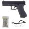 La Réplique airsoft MK1 Type G17 Spring (Saigo Defense) est une réplique de poing mesurant 190mm pour un poids de 225g. La Réplique airsoft SG00058 se réarme manuellement en tirant la culasse vers l'arrière à chaque tir et propulse des billes airsoft plastiques de 6mm.