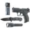 Pack défense Walther avec pistolet d'alarme P22Q calibre .9mm P.A., couteau Black Tac et lampe tactique PL50 275 lumens. Le pack est livré dans une mallette en ABS très qualitative avec une pile pour la lampe, des dragonnes et un embout lanceur de fusées.