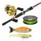 Le pack premium (canne + moulinet + tresse + leurres) pour pêcher les brochets et autres gros carnassiers lors de vos déplacements et voyages.