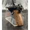 le poids est tres proche de l original et les gravures sont bien faites... un beau pistolet...le dessin des poignée est tres bien fait..l aspect faux bois est pas trop mal et on a la boucle en métal pour le passage de la lanière..au global on a une belle réalisation..