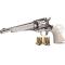 Très belle réplique, full métal, avec crosse polymère imitation ivoire, du fameux revolver Remington RR 1875, fonctionnant avec du CO2, capable de tirer les 2 types de munitions 4,5 mm, plombs et billes BBs.