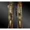 Les montures en noyer, sont constellées de pastilles en corne et réhaussées de fils d’argent.