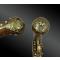 Calottes à courtes queues, décorées de laiton aux motifs d’une fleur à cœur en relief, avec sur chacun des côtés un croissant de lune et une fleur.