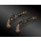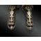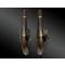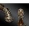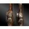 Montures en noyer sculpté, richement décorées d’un décor en argent découpé et ajouré formant rinceaux, coupes d’abondances, oiseaux. Les calottes ovoïdes sont ornées d’une bande en argent finement gravée, d’argent découpé et terminées par un bouton.