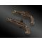 Les contre-platines portent des brides de ceinture. Pontets gravés, ornés d’une bande en argent gravé.