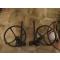 VINTAGE - Ancienne paire de landiers/chenets forgée à la main avec Bol & Crochets en fonte, d’époque XIXeme