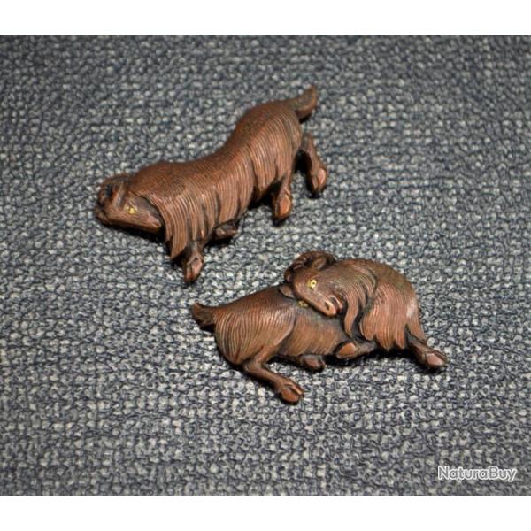 MENUKI JAPON EDO CHIOT JOUANT SHAKUDO et OR Collection Très bon Japon XIX eme