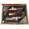 Dans un coffret d´acajou, compartimentalisé, avec son clé ( n´est pas son coffret original) Acessoires; poire a poudre vintage, ancien moule a balles, boite a l ´huile , clé de vis sont vintage.