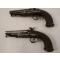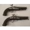 Pair of French Officer combat pistols, Consulate period 1799/1804 model, transformed into percussion late 1820`s, in case.Round Barrels , with 13 cm long, smooth bore , highly affected by moisture being hardly cleaned,Plain steel garrisons and shinning patine. Plain locks ; Checkered walnut stocks with carved decorations in back of stock and around lock ( same bosses here and there) . Wood rods with steel caps (one with substituted cap and bullet pull over slightly crooked).Hook belt on side plate.Mechanically perfect in armed and security positions. Proof mark or signature of ST. ETIENNE