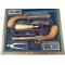 Paire de Pistolets Liége á percussion box lock circa 1840 en coffret .Les cannons de type TROMBLON.Tiens dans les deux crans.Ressorts son puissants.Dans un étui de bois , avec compartiments, contient un poire a poudre et tournevis vintage et un mold de balles.