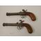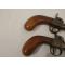 Pair of Liége 1840 box lock pistols.Steel body box lock type, Large impressive Barrels blunderbuss ( TROMBLON) shape;Walnut Stocks drop shape ; Proof mark ELG in a circle . Mechanically good both in security and armed positions.