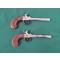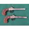 Pair of Percussion Pistols, Box lock type (forced bullet) problably French. Eightfold steel barrels, oxydated but clean , powerful springs, works well on both notches. Pretty wooden stock (rosewood?) finely checkered also , functional mechanics.
