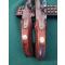 Paire de Pistolets de Percussion ,Type Box lock ( balle forcée ) et peut être Francaises circa 1830 . Cannons acier á pans , oxydées mais netoyaiée ressorts puissants, travaille bien au deux crans.Jolie crosse em bois ( palissandre? ) finement sculptée et quadrillée , mécanique functionelle.écusson de possession