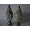 Rare paire de pots couverts en céramique signé : H.Horngacher décor peint a la main pièce unique d'époque 1890/1910 bon état (sauf un cheveu , voir photo)