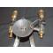 Très belle paire d'appliques de salle d'armes fabriquées à partir de baïonettes originales à viroles qui comportent leurs numéros de série (époque environ 19e). Elles sont éléctrifiés et reçoivent des ampoules à baïonettes sur support en bronze. En parfait état avec une belle patine.