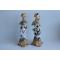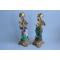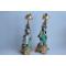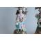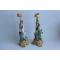 Paire de bougeoirs en porcelaine polychrome et bronze ciselé et doré, style Louis XV, représentant une jeune femme tenant un panier et un bouquet de fleurs, et un jeune homme joueur de cornemuse en costume du XVIIIe siècle d'époque XIXe siècle bon état