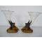 Paire de bouquetières Napoléon III tulipe en cristal gravé et taillé soutenu une sirène ailée en bronze argentée sur socle en bronze Bon état (sauf une egrenure peu visible, voir photo)
