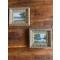 Paire petits tableaux huile représentant paysages d'étangs - dimensions cadres : 29,5 cms x 24,5 cms , dimensions peinture : 18 x 14 cms