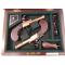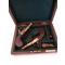 Dans un coffret pas d´époque, avec clé compartimentalisé et avec acessoires; poire a poudre láton vintage et un tournevis.