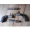 Canons à pans (je pense en damas) puis ronds démontables portant l'inscription " porté garantie 100 mètres " ce qui est extraordinaire pour ce genre de pistolets !
