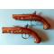 Fin années 1700 , état découverte grenier demeure val de Loire , paire de pistolets de voyage , platines a pierre ,sans baguettes,(une bois) jamais tiré,jamais frotté bricolé ou ponce(!) Jamais manipulé vraisemblablement... Cal 12mm, long totale 18,5cm, légère peau d'orange au pontet et calotte sur une pièce, forts ressorts,abattu de chien franc et fort.bonne accroche des crans ,décors de crosses fil argent disposés en "gauche et droite "Intérieurs canons très bons. Bois sans fêlés ni manques notables.