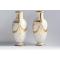 Paire de vases en porcelaine à décor émaillé or par Reissner, Stellmacher & Kessel estampillé dessous : Turn - Teplitz - Bohemia - R St K - Made in Austria bon état, petits manques de dorure, voir photos