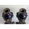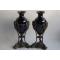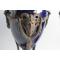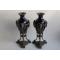 Paire de vases en porcelaine bleue, monture tripode en bronze à décor de tête de satyres