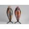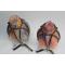Paire de vases en verre soufflé dans une monture en fer forgé