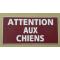 Pancarte "ATTENTION AUX CHIENS" dimensions 75 x 150 mm fond LIE DE VIN