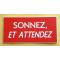 Pancarte "SONNEZ ET ATTENDEZ" format 75 x 150 mm fond ROUGE