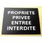 Pancarte adhésive "PROPRIETE PRIVEE ENTREE INTERDITE" format 150 x 115 mm fond NOIR