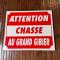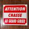 Pancarte panneau " ATTENTION CHASSE AU GRAND GIBIER " 30X25