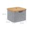 Boîte de rangement en tissu o Dimensions HxlxP: 25 x 33 x 33 cm o Dimensions intérieures HxlxP: 22 x 30 x 30 cm o Dimensions pliée HxlxP: 3,5 x 34 x 34 cm o Poids: 1 kg o Matériel: tissu, bambou o Couleur: gris, nature