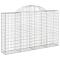 Panier de gabions arqué 200x30x120/140 cm Fer galvaniséCe panier de gabions pratique est spécialement conçu comme barrière de jardin décorative et insonorisante. Matériau durable : il est fabriqué en fer galvanisé résistant à la corrosion pour plus de stabilité et de durabilité, et avec un diamètre de fil de gabion robuste de 3,5 mm, le mur de gabion ornera sûrement votre jardin en toute saison. Construction stable : la cage à gabion voûtée est conçue pour être remplie de roches ou de gravier pour une construction stable. Large application : vous pouvez placer ce mur de soutènement en gabion partout où vous avez besoin pour garder le vent et la pluie à l'extérieur. Vous pouvez également le placer dans votre jardin, cour avant ou sur le patio comme supplément décoratif à votre espace de vie extérieur. Crochets de gabion renforcés : les crochets de gabion renforcés inclus relient étroitement les panneaux métalliques opposés afin que le mur de soutènement de la cage en pierre puisse conserver sa forme même lorsqu'il est rempli de roche ou d'autres matériaux. Utilisation pratique : une fois le montage terminé, il vous suffit de remplir le panier mural gabion avec des pierres pour une utilisation immédiate. Il peut être rempli de matériaux naturels tels que le béton, le grès et la pierre colorée. Bon à savoir :Pour faciliter au maximum le montage, chaque produit est livré avec des instructions. Les pierres ne sont pas incluses dans la livraison. Attention ! Les fils métalliques peuvent être pointus et tranchants ! Portez des chaussures de sécurité et des gants de protection lors de l'installation !