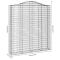 Panier de gabions arqué 200x30x220/240 cm Fer galvaniséCe panier de gabions pratique est spécialement conçu comme barrière de jardin décorative et insonorisante. Matériau durable : il est fabriqué en fer galvanisé résistant à la corrosion pour plus de stabilité et de durabilité, et avec un diamètre de fil de gabion robuste de 3,5 mm, le mur de gabion ornera sûrement votre jardin en toute saison. Construction stable : la cage à gabion voûtée est conçue pour être remplie de roches ou de gravier pour une construction stable. Large application : vous pouvez placer ce mur de soutènement en gabion partout où vous avez besoin pour garder le vent et la pluie à l'extérieur. Vous pouvez également le placer dans votre jardin, cour avant ou sur le patio comme supplément décoratif à votre espace de vie extérieur. Crochets de gabion renforcés : les crochets de gabion renforcés inclus relient étroitement les panneaux métalliques opposés afin que le mur de soutènement de la cage en pierre puisse conserver sa forme même lorsqu'il est rempli de roche ou d'autres matériaux. Utilisation pratique : une fois le montage terminé, il vous suffit de remplir le panier mural gabion avec des pierres pour une utilisation immédiate. Il peut être rempli de matériaux naturels tels que le béton, le grès et la pierre colorée. Bon à savoir :Pour faciliter au maximum le montage, chaque produit est livré avec des instructions. Les pierres ne sont pas incluses dans la livraison. Attention ! Les fils métalliques peuvent être pointus et tranchants ! Portez des chaussures de sécurité et des gants de protection lors de l'installation !