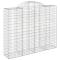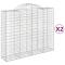Paniers à gabions arqués 2 pcs 200x50x160/180 cm Fer galvaniséCes paniers de gabion pratiques sont spécialement conçus pour servir de barrières de jardin décoratives et insonorisantes. Matériau durable : il est fabriqué en fer galvanisé résistant à la corrosion pour plus de stabilité et de durabilité, et avec un diamètre de fil de gabion robuste de 3,5 mm, le mur de gabion ornera sûrement votre jardin en toute saison. Construction stable : la cage à gabion voûtée est conçue pour être remplie de roches ou de gravier pour une construction stable. Large application : vous pouvez placer le mur de soutènement en gabion partout où vous avez besoin pour garder le vent et la pluie à l'extérieur. Vous pouvez également le placer dans votre jardin, cour avant ou sur le patio comme supplément décoratif à votre espace de vie extérieur. Crochets de gabion renforcés : les crochets de gabion renforcés inclus relient étroitement les panneaux métalliques opposés afin que le mur de soutènement de la cage en pierre puisse conserver sa forme même lorsqu'il est rempli de roche ou d'autres matériaux. Utilisation pratique : une fois le montage terminé, il vous suffit de remplir le panier mural gabion avec des pierres pour une utilisation immédiate. Il peut être rempli de matériaux naturels tels que le béton, le grès et la pierre colorée. Bon à savoir :Pour faciliter au maximum le montage, chaque produit est livré avec des instructions. Les pierres ne sont pas incluses dans la livraison. Attention ! Les fils métalliques peuvent être pointus et tranchants ! Portez des chaussures de sécurité et des gants de protection lors de l'installation !