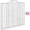 Paniers à gabions arqués 2 pcs 200x50x180/200 cm Fer galvaniséCes paniers de gabion pratiques sont spécialement conçus pour servir de barrières de jardin décoratives et insonorisantes. Matériau durable : il est fabriqué en fer galvanisé résistant à la corrosion pour plus de stabilité et de durabilité, et avec un diamètre de fil de gabion robuste de 3,5 mm, le mur de gabion ornera sûrement votre jardin en toute saison. Construction stable : la cage à gabion voûtée est conçue pour être remplie de roches ou de gravier pour une construction stable. Large application : vous pouvez placer le mur de soutènement en gabion partout où vous avez besoin pour garder le vent et la pluie à l'extérieur. Vous pouvez également le placer dans votre jardin, cour avant ou sur le patio comme supplément décoratif à votre espace de vie extérieur. Crochets de gabion renforcés : les crochets de gabion renforcés inclus relient étroitement les panneaux métalliques opposés afin que le mur de soutènement de la cage en pierre puisse conserver sa forme même lorsqu'il est rempli de roche ou d'autres matériaux. Utilisation pratique : une fois le montage terminé, il vous suffit de remplir le panier mural gabion avec des pierres pour une utilisation immédiate. Il peut être rempli de matériaux naturels tels que le béton, le grès et la pierre colorée. Bon à savoir :Pour faciliter au maximum le montage, chaque produit est livré avec des instructions. Les pierres ne sont pas incluses dans la livraison. Attention ! Les fils métalliques peuvent être pointus et tranchants ! Portez des chaussures de sécurité et des gants de protection lors de l'installation !