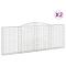 Paniers à gabions arqués 2 pcs 400x30x140/160 cm Fer galvaniséCes paniers de gabion pratiques sont spécialement conçus pour servir de barrières de jardin décoratives et insonorisantes. Matériau durable : il est fabriqué en fer galvanisé résistant à la corrosion pour plus de stabilité et de durabilité, et avec un diamètre de fil de gabion robuste de 3,5 mm, le mur de gabion ornera sûrement votre jardin en toute saison. Construction stable : la cage à gabion voûtée est conçue pour être remplie de roches ou de gravier pour une construction stable. Large application : vous pouvez placer le mur de soutènement en gabion partout où vous avez besoin pour garder le vent et la pluie à l'extérieur. Vous pouvez également le placer dans votre jardin, cour avant ou sur le patio comme supplément décoratif à votre espace de vie extérieur. Crochets de gabion renforcés : les crochets de gabion renforcés inclus relient étroitement les panneaux métalliques opposés afin que le mur de soutènement de la cage en pierre puisse conserver sa forme même lorsqu'il est rempli de roche ou d'autres matériaux. Utilisation pratique : une fois le montage terminé, il vous suffit de remplir le panier mural gabion avec des pierres pour une utilisation immédiate. Il peut être rempli de matériaux naturels tels que le béton, le grès et la pierre colorée. Bon à savoir :Pour faciliter au maximum le montage, chaque produit est livré avec des instructions. Les pierres ne sont pas incluses dans la livraison. Attention ! Les fils métalliques peuvent être pointus et tranchants ! Portez des chaussures de sécurité et des gants de protection lors de l'installation !