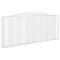 Paniers à gabions arqués 2 pcs 400x30x160/180 cm Fer galvaniséCes paniers de gabion pratiques sont spécialement conçus pour servir de barrières de jardin décoratives et insonorisantes. Matériau durable : il est fabriqué en fer galvanisé résistant à la corrosion pour plus de stabilité et de durabilité, et avec un diamètre de fil de gabion robuste de 3,5 mm, le mur de gabion ornera sûrement votre jardin en toute saison. Construction stable : la cage à gabion voûtée est conçue pour être remplie de roches ou de gravier pour une construction stable. Large application : vous pouvez placer ce mur de soutènement en gabion partout où vous avez besoin pour garder le vent et la pluie à l'extérieur. Vous pouvez également le placer dans votre jardin, cour avant ou sur le patio comme supplément décoratif à votre espace de vie extérieur. Crochets de gabion renforcés : les crochets de gabion renforcés inclus relient étroitement les panneaux métalliques opposés afin que le mur de soutènement de la cage en pierre puisse conserver sa forme même lorsqu'il est rempli de roche ou d'autres matériaux. Utilisation pratique : une fois le montage terminé, il vous suffit de remplir le panier mural gabion avec des pierres pour une utilisation immédiate. Il peut être rempli de matériaux naturels tels que le béton, le grès et la pierre colorée. Bon à savoir : Pour faciliter au maximum le montage, chaque produit est livré avec des instructions. Remarque : Les pierres ne sont pas incluses dans la livraison. Attention ! Les fils métalliques peuvent être pointus et tranchants ! Portez des chaussures de sécurité et des gants de protection lors de l'installation !