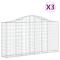 Paniers à gabions arqués 3 pcs 200x30x100/120 cm Fer galvaniséCes paniers à gabions ont été spécialement conçus comme barrières de jardin décoratives et insonorisantes. Matériau durable : fabriqués en fer galvanisé résistant à la corrosion pour plus de stabilité et de durabilité, et avec un diamètre de fil de gabion robuste de 3,5 mm, ces murs de gabion orneront votre jardin saison après saison. Construction stable : ces cages à gabions arquées sont conçues pour être remplies de roches ou de gravier pour une construction stable. Large application : vous pouvez placer ces murs de soutènement en gabion partout où vous avez besoin pour garder le vent et la pluie à l'extérieur, et ils peuvent également être placés dans votre jardin, cour avant ou sur votre terrasse comme supplément décoratif à votre espace de vie extérieur. Crochets de gabion renforcés : les crochets de gabion renforcés inclus relient étroitement les panneaux métalliques opposés afin que ces murs de soutènement en cage de pierre puissent conserver leur forme même lorsqu'ils sont remplis de roche ou d'autres matériaux. Utilisation pratique : une fois le montage terminé, il vous suffit de remplir ces paniers muraux à gabions de pierres pour une utilisation rapide. Ils peuvent être remplis de matériaux naturels tels que du béton, du grès et de la pierre colorée. Bon à savoir :Chaque produit est livré avec un manuel de montage dans la boîte pour un montage facile. Les pierres ne sont pas incluses dans la livraison. Attention ! Les fils métalliques peuvent être pointus et tranchants ! Portez des chaussures de sécurité et des gants de protection lors de l'installation !