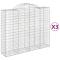 Paniers à gabions arqués 3 pcs 200x50x160/180 cm Fer galvaniséCes paniers de gabion pratiques sont spécialement conçus pour servir de barrières de jardin décoratives et insonorisantes. Matériau durable : il est fabriqué en fer galvanisé résistant à la corrosion pour plus de stabilité et de durabilité, et avec un diamètre de fil de gabion robuste de 3,5 mm, le mur de gabion ornera sûrement votre jardin en toute saison. Construction stable : la cage à gabion voûtée est conçue pour être remplie de roches ou de gravier pour une construction stable. Large application : vous pouvez placer le mur de soutènement en gabion partout où vous avez besoin pour garder le vent et la pluie à l'extérieur. Vous pouvez également le placer dans votre jardin, cour avant ou sur le patio comme supplément décoratif à votre espace de vie extérieur. Crochets de gabion renforcés : les crochets de gabion renforcés inclus relient étroitement les panneaux métalliques opposés afin que le mur de soutènement de la cage en pierre puisse conserver sa forme même lorsqu'il est rempli de roche ou d'autres matériaux. Utilisation pratique : une fois le montage terminé, il vous suffit de remplir le panier mural gabion avec des pierres pour une utilisation immédiate. Il peut être rempli de matériaux naturels tels que le béton, le grès et la pierre colorée. Bon à savoir :Pour faciliter au maximum le montage, chaque produit est livré avec des instructions. Les pierres ne sont pas incluses dans la livraison. Attention ! Les fils métalliques peuvent être pointus et tranchants ! Portez des chaussures de sécurité et des gants de protection lors de l'installation !