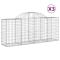 Paniers à gabions arqués 3 pcs 200x50x80/100 cm Fer galvaniséCes paniers de gabion pratiques sont spécialement conçus pour servir de barrières de jardin décoratives et insonorisantes. Matériau durable : il est fabriqué en fer galvanisé résistant à la corrosion pour plus de stabilité et de durabilité, et avec un diamètre de fil de gabion robuste de 3,5 mm, le mur de gabion ornera sûrement votre jardin en toute saison. Construction stable : la cage à gabion voûtée est conçue pour être remplie de roches ou de gravier pour une construction stable. Large application : vous pouvez placer le mur de soutènement en gabion partout où vous avez besoin pour garder le vent et la pluie à l'extérieur. Vous pouvez également le placer dans votre jardin, cour avant ou sur le patio comme supplément décoratif à votre espace de vie extérieur. Crochets de gabion renforcés : les crochets de gabion renforcés inclus relient étroitement les panneaux métalliques opposés afin que le mur de soutènement de la cage en pierre puisse conserver sa forme même lorsqu'il est rempli de roche ou d'autres matériaux. Utilisation pratique : une fois le montage terminé, il vous suffit de remplir le panier mural gabion avec des pierres pour une utilisation immédiate. Il peut être rempli de matériaux naturels tels que le béton, le grès et la pierre colorée. Bon à savoir :Pour faciliter au maximum le montage, chaque produit est livré avec des instructions. Les pierres ne sont pas incluses dans la livraison. Attention ! Les fils métalliques peuvent être pointus et tranchants ! Portez des chaussures de sécurité et des gants de protection lors de l'installation !